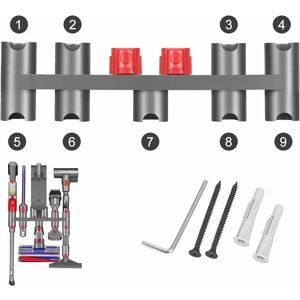 【Compatible Models】Accessory Holder Compatible with original docking station Can be used with original charging station, create your organization system for Dyson V7 V11 V8 V10 SV10 SV11. 【Premium Design】Using high quality materials, fine polishing and graphic design make the color closer to the original product, perfect performance. 【Save Space and Time】Each accessory holder comes with an adapter in the docking station, allowing you to easily organize messy accessories and save space in your home. your home. 【Firmness and Security】Our Mount Holder accessory has a large load-bearing capacity and cannot fall off, which can protect your attachment. 【Package Includes】1x Accessory Holder, 1 x Hex Screwdriver, 2 x Screws, 2 x Expansion Screws. There are 9 slots, enough for daily needs. Accessory Holder for Dyson Accessory Holder for Dyson Superior design With 9 card slots in your docking station, the wall mount won't take up floor space, neat and beautiful. The wall-mounted design does not