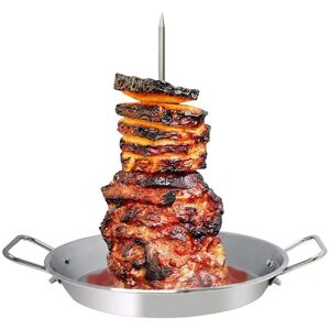 [High Quality Design]: Our Al pastor skewer for grill is made from high-quality, food-grade stainless steel, reliable and sustained, not easy to deform, tear or break, and can be for a long time. The upright grill design ensures even cooking with all-round airflow and rapid heat absorption. [Fits Most Oven and Grill]: This vertical skewer Al pastor has 3 different lengths of Stick(8inch, 10inch, 12inch) and fits most ovens, smokers, grills, etc. The upright grill replaces the traditional fragile bamboo skewers, which are more and can handle several pounds of meat without tipping over. The sticks are thick and 't break and tilt, and the point makes the meat easy to stack. [Easy to Install and Storage]: Para Tacos Al Pastor rods and base are connected by thread, ensuring a tight fit and stable, shake-free assembly. Compared to other grilling tools, the round base of this grill pan collects juices from your food, and retains moisture for your food and adding more delicious flavor. [Easy