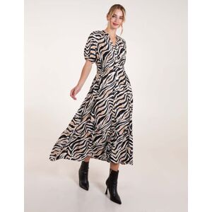 Swap your leopard print dress for this zebra printed midi dress. Team this light breezy option with gladiator sandals. 85% Viscose, 15% Nylon Made In China Machine washableCrew neckline Short cuffed sleeveButton frontElasticated waist Model wears a size: S/MModel height: 5ft 8 / 173cm