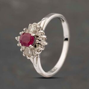 14ct White Gold Ruby & Diamond Cluster Ring Width: 11mm Weight: 2.9g Pre-Owned Jewellery is a diverse collection made up of unique, one-off pieces. All of our items are assessed by our team of experts and we are constantly working hard to ensure we bring you the very best quality and value. Each piece also comes with our 12 month warranty for your peace of mind. Click here to view our entire Pre-Owned collection Alternatively, to make enquiries or view items in person please call or visit your local T.H. Baker store. Click here to find your nearest store