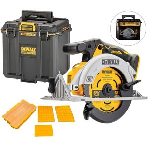 A brushless version of the very popular DCS391N brushed machine the DCS565N offers the user the same compact style but with the benefits of a brushless motor. The DeWalt 18v XR Brushless 165mm Circular Saw Bare Unit is compact machine offering fast, consistent cutting. It would be used mostly by trade professionals. This Saw combines performance and versatility to be able to take on a variety of cutting applications. It really benefits all the features of the brushless motor, which delivers 4,950 rpm, for a fast, accurate and consistent cut. This saw has a built-in rafter hook, bright LED, and optional dust chute. It has a comfortable positioning for both hands, giving the user plenty of support whilst cutting. Supplied as a single unit, including 1x 24T TCT blade, 1x Dust Extraction port, 1x Hex Key and rip fence. Features and Benefits: Secondary Handle - For extra grip Depth lever - Quick tool-free depth adjustment On board tool storage - Quickly change blade Airlock Dust Port