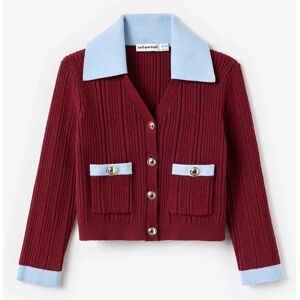 Self Portrait reinterpret vintage archives into stylish everyday pieces. This girls burgundy ribbed cardigan is woven from a beautiful high quality fabric, perfect for cooler A/W days. • Retro Accents• Super Soft Cashmere• Knit Cardigan• Colourful Contrast Trims and Gold Buttons• True to Size• Fabric Has Stretch• Button Closure Down Front• Functional Pockets• Matching Skirt Available• Main: 42% Polyamide, 23% Viscose, 18% Polyester, 14% Wool, 3% Cashmere• Trim 1: 82% Cotton 18% Polyester (Exclusive Of Trimmings)