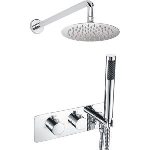 This beautiful traditional 2 dial 2 way concealed thermostatic shower valve will add the perfect elegant touch to your classical bathroom, with its concealed body hidden within the wall to give your bathroom a much cleaner & simpler look. The concealed valve offers thermostatic showering via two easy-to-operate controls, with separate controls for temperature and flow. Nes Home Bathroom 2 Way Traditional Victorian Concealed Thermostatic Shower Valve Mixer in Metallic Silver