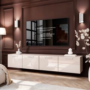 The AURA TV cabinet combines modern design with elegance thanks to its cashmere high-gloss finish and lightweight, wall-mounted structure. Its functional interior, handles, and LED lighting offer convenience and stylish organization of your space. Latitude Run Colour: Gold