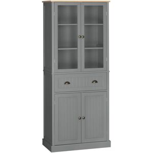 This HOMCOM Farmhouse kitchen storage unit transforms your kitchen from cluttered, to organised - in no time. It's formed of and upper and lower cupboard and middle drawer - so there's plenty of room for all the essentials. The glass accents on the upper cupboard add a sleek touch, whilst allowing you to see inside easily. Not just for the kitchen - you can use this pantry in the living room, hallway - or even the office. Specifications: ● Colour: Grey, Oak ● Materials: MDF, Particle Board, Glass ● Overall Dimensions: 76W x 40D x 182.5H cm ● Top Cabinet Inner Size: 70W x 35D x 28/26.5/29H cm ● Drawer Inner Size: 62.5W x 29D x 14H cm ● Bottom Cabinet Inner Size: 70W x 35D x 30/30H cm ● Weight Capacity: 15 kg. (each Shelf) ● Item Label: 835-602GY Just so you know: this item ships and arrives in separate boxes. Delivery times may vary with each box. Box quantity: 2 Features: ● Farmhouse design. A simple and beautiful design. Looks great in plenty of different home styles ● Upper and