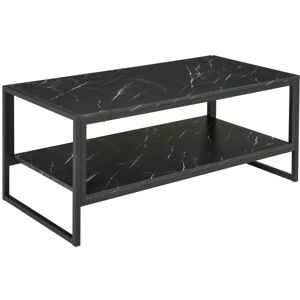 Bringing a sleek and exciting twist to an everyday home furnishing piece, this coffee table from HOMCOM is perfect for updating your space instantly. Its two-tier design ensures it will give you plenty of room for storing and holding what you need, with the metal frame ensuring it is strong and sturdy for everyday use. Both table tops are made into a black and laminate marble print table top finish for a beautiful look which looks great placed almost anywhere.