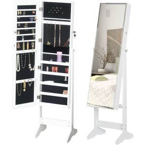 This is a must for the make-up and jewellery fanatics - a place to get ready and keep everything securely stored. The HOMCOM jewelry organiser is formed of a large mirror, inner storage and back storage. Inside the compartment for earrings, bracelets, necklaces, etc., with small inner mirror so you don't have to take everything out once when getting ready. It moves from side-to-side in a full 360° motion so you can see it any angle. Finished with three shelves on the back for extra storage. Specifications: ● Colour: White ● Material: MDF, Glass ● Overall Dimensions: 38W x 38D x 160Hcm ● Cabinet Dimensions: 38W x 9.6T x 156Hcm ● Large Mirror Size: 28W x 146Hcm ● Small Mirror Size: 34.5W x 24Hcm ● Weight Capacity: 20kg ● Item Label: 831-393 Features: ● 360° mirror motion to see at whatever angle ● Safe locking design, comes with two keys. Useful magnetic catch on the door ● Inside features multiple earring slots, necklace and bracelet hooks, ring slots and shelves ● Frame is made from