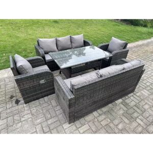 This deluxe 6 piece rattan sofa set is a great addition to patio or garden, made of high quality PE rattan and durable galvanized steel. Pls kindly leave your mobile number at checkout for not delaying your shipment . Set dimensions: • 2 x Reclining chairs Size: 74W x 69D x 79H cm • 2 x Love Sofa Size: 124W x 67D x 79H cm • 1 x dining Table Size: 140L x 80W x 69H cm • 2 Small fully assembled footstools:40W x 40W x 34H cm Dark grey mixed rattan with dark grey fabric .Color may vary due to light or monitor .we are unable to return the item due to this problem .Please contact us before purchase if you have requirements on color saturation . The 2 armchairs are adjustable, you can adjust the inclination of the chair back from 90°-130° through the button . Items Comes Flat Packed And Easy to Assemble,Sturdy Galvanized Steel Tube Metal Frames With Powder Coating To Prevent The Rust, Ergonomic High Back And Declining Design For Extra Comfort Flat PE Rattan Completely Made By Hand, 5mm Thick
