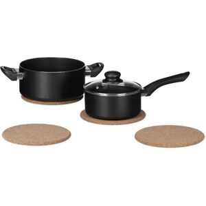 Keep your countertop and tables safe from ugly burns! With this robust set of 4 potholders, you can put down pots, pans, casseroles, bowls and more safely and without worry. Hot plates, cups and more can of course be just as easily be accommodated without risk of scratches. These cork trivets are not only helpful at the table, but also when getting seconds from the kitchen for your loved ones. You can of course also use them for less heated situations, as flower stands or fancy bulletin boards. Cork Pot Holders Set of 4 Details - H x D: app. 1 x 19.3 cm - Weight per trivet: app. 100 g - Material: Cork - Colour: Natural brown Potholders - Pads for table or countertop - For hot pots, bowls and pans - Heatproof and washable material - Can also serve as bulletin boards and plant stands Included in Delivery - 4 x Round Trivets - Decorative items shown in product photos are not included