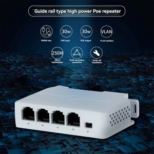 4-Ports PoE Extender has 5 10/100M PoE ports, among them, 1 port for power input, and others for power output. Comply with 10/100BASE-TX, IEEE802.3at (power-in) /IEEE802.3af (power-out). The power input is 25.5W in total. Power output for single port is 15.4W ( max). PoE Extenders can increase the transmission distance for Ethernet data and PoE power up to 120m via Cat5 UTP cables. It offers you great flexibility to extend the distance of PoE.Comply with IEEE 802.af Power over Ethernet; 10/100M Supported;Extender the range of PoE an additional 120 meters; Automatically detects and protects PoE equipments from being damaged by incorrect installation;Plug-and Play no configuration required; 1Port PoE extender can forward both ethernet and PoE power for 1 terminal equipment via Cat5 UTP cable. Specification: PoE input: 1 RJ45 port PoE output: 4 RJ45 port Network Medium: Cat5 or better UTP cables (less than 120m/393ft) Repeater Mode: Store and forward Address Table: 2K Packet Buffer
