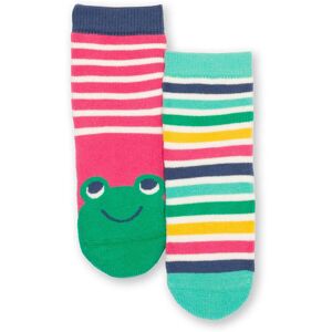 90% organic cotton 8% polyamide 2% elastane Frog face and stripe designs Terry knit with grippy spots on soles Slipper sock style (thicker knit) Two pack Made in Turkey Machine washable at 40 degrees, or at 30 degrees to be kinder to the planet
