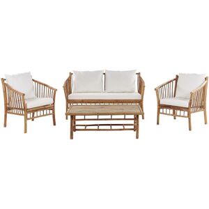 Modern Outdoor Sofa Set with Cushions. Experience luxury and comfort with this acacia wood garden lounge set. This elegant ensemble includes two armchairs, a two-seater sofa, and a coffee table. The backrests feature exquisite Viennese braid detailing, adding a touch of sophistication. Plush cushions with removable, zippered covers ensure easy maintenance. Perfect for outdoor relaxation, this set combines durability with timeless style, creating an inviting oasis in your garden. Details: Product Type: Sofa Set Style: Traditional General Color: Brown, Beige Shade: Light Beige Material Type: Wood Main Material: FSC® Certified Acacia Wood Additional Material: Steel Top Material: Wood Material Composition: 100% Polyester Finish: Oiled Seat Foam Density: 20 kg/m3 Seats Up To: 4 People Dimensions: 2 Seater Sofa Dimensions: 120x58x75 Armchair Dimensions: 50x58x75 Coffee Table Dimensions: 80x44x38 Seat Thickness: 5 cm Seat Height: 39 cm Overall Dimensions: 120x58x75 Weight: 25 kg Table Weight
