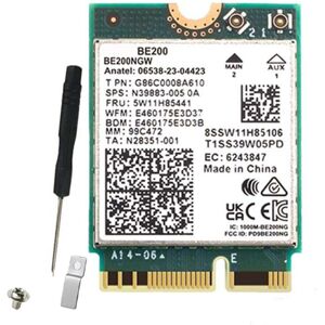 Description/Features: Support technology: -MIMO, OFDMA Supported Operating Systems: Only work with for Win10/11 64bit Specifications: Model: For Wi-Fi 7 BE200 Color: green Material: PCB Chip: For BE200 Tri-band: 2.4Ghz / 5Ghz / 6Ghz (160Mhz-Up to 2400Mbps, 320Mhz-Up to 5.8 Gbps) Max speed: to 5800Mbps (2x2, 320 MHz, 4K QAM) Bluetooth Version: Bluetooth 5.4 Interface: NGFF(M.2) Compatible With: It can used on For /For /For /For /For ISUS/For /For /For Terransforce/For Hasee etc. Due to different batches, there may be differences in product appearance and printed text, which not affect use Package Contents: 1 x WiFi card 1 x Accessories kit (random color and appearance, Cannot be chosen the specific color and appearance.) Only the above package content, other products are not included. Note: Light reflection and different displays may cause the color of the item in the picture a little different from the real thing. The measurement allowed error is +/- 1-3cm.