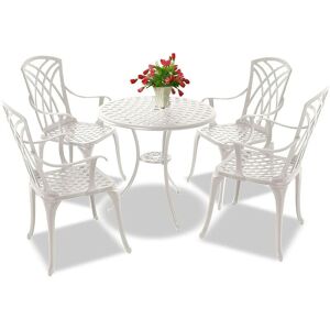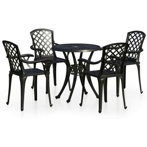 This bistro set, made of cast aluminium, provides a comfortable seating experience for you and your guests. The outdoor chairs and table, made of cast aluminium, are both sturdy and durable. The rust-resistant and weather-resistant material makes the furniture set ideal for outdoor use. The beautiful patterns make the bistro set an elegant addition to your outdoor space. Additionally, the coffee table has an umbrella hole that can perfectly accommodate your umbrella to protect you from sun or rain. Note: In order to extend the life of your outdoor furniture, we recommend you to clean it regularly and do not leave it outdoors without protection unnecessarily. Clean: Use a mild soap solution Storing: If possible, store in a cool, dry place indoors. If the product is stored outdoors, protect it with a waterproof cover. Wipe and dry the excess water or snow from flat surfaces after a rain or snowfall. Allow sufficient air circulation to avoid moisture-related damage. Colour: Black