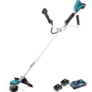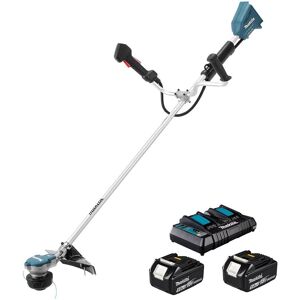 The DUR368A has an energy effecient brushless motor to ensure maximum runtimes from LXT batteries. Three speed settings are provided and its Automatic Torque Drive sensor automatically changes the cutting speed according to load conditions to prevent it from getting bogged down in tougher terrain, thereby maintaining consistent performance at all times. If foliage becomes jammed in the cutting head, a reverse switch provides a quick and easy way to disengage it with minimal interruption. Features & Benefits • Powerful 36v motor powered by two Makita 18v LXT batteries • Active Feedback Sensing Technology • AFT system shuts down the tool to protect the user • Automatic Torque Drive Technology • Brushless motor for longer runtimes • Dual battery fuel gauge • Electronic current limiter for overload protection • Electric brake • Three speed settings (Hi/Med/Lo) • Soft start motor • Constant speed control • Small protector for better view of cutting area • Reverse switch for clearing jams • Ergonomic offset handle bars • Extremely low noise Specifications • Battery Type: Makita LXT Lithium-ion • Battery Voltage: 36v (2x 18v) • Cutting Diameter: 350mm • No Load Speed (Hi): 6500rpm • No Load Speed (Med): 5300rpm • No Load Speed (Lo): 3500rpm • Spindle Size: M10 x 1.25mm Left • Noise K Factor: 1.6dB(A) • Noise Sound Pressure: 76.4dB(A) • Noise Sound Power: 89dB(A) • Vibration K Factor: 1.5m/sec² • Vibration (Nylon Cutting Head): 2.5m/sec² • Net Weight: 4.1-4.7kg Contents • Makita DUR368A Twin 18v LXT Cordless Brushless Brush Cutter • Nylon cutting head • Shoulder strap • Accessory bag • Hex wrench • Box driver • No Batteries • No Charger