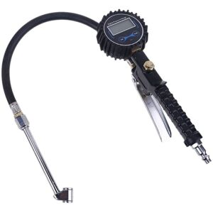 [Accurate Digital Tire Gauge] 1% of the exact pressure of your tire by 0.5 display resolution. [Easy to Use]Features for single handed operation & smooth between inflation & deflation trigger to inflate the tire, air bleeder to deflate, and each operation reflects on screen numbers. [Rugged Engineering for Safety]Built for all-day performance in the shop or home garage, made from the highest quality steel and lasting brass components [Easy to Read]Bright LCD backlight with auto on & off, wide backlit LCD screen displays large, clear numbers in 4 units by KPA, Bar, or Kg/for cm^2 per your preference [Suitable for All Vehicles]Use this tire inflator gauge on a wide variety of tire sizes for all types of vehicles: Construction vehicle, Large truck, SUV, for Cars and Motorcycles Tips: The product may be updated constantly, The Actual Product May Have Slight Differences Or Color Differences the color and appearance may be changed, please don't mind. And take a consideration before place