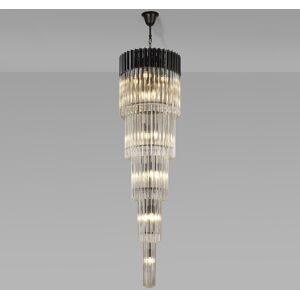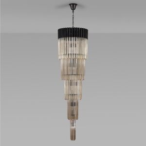 This Metro range comes from Prestige Lighting collection. The contemporary design of this spiral 23 light ceiling pendant combines a traditional brass finish with cognac sculptured glass pieces. The long, angular shape of the glass looks amazing when the light is on or off. The Metro range has a traditional regal effect composed with modern materials to create a range suitable for either a modern or more traditional room settings. The whole range offers great diversity of finishes and variety of glass. Please call the office for more information. Please note, this item might be shipped on the pallet. Some shipping restrictions might apply. FEATURES: * Spiral ceiling pendant light * Brass finish * Cognac sculptured glass * Handcrafted * Earthed * Requires 23 lights * Dimmable with suitable lamp / dimmer switch * Height adjustable prior to installation * Nett weight: 57 kg SIZE: * Min drop: 195cm * Max drop: 420cm * Body height: 168cm * Diameter: 70cm LAMP: * Requires 23 x Small Edison Screw LED Candle Lamps - NOT INCLUDED