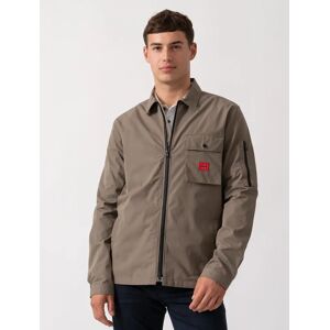 HUGO Emmond Mens Zip Overshirt in Open Green 355A trend-driven zip-up overshirt by HUGO Menswear in cotton-rich canvas, featuring a zipped pocket at the sleeve and a red logo label. Regular fit Camp collar Patch chest pockets Squared cuffs 75% Cotton, 25% Polyamide 50482701