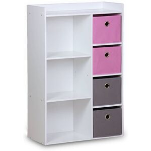 Product benefits 2 bin sizes: 3 large, 6 small 4 shelves 1 storage unit closed by a door Anti-tilt Keep things tidy and stylish with our storage furniture specially designed for children, combining practicality and aesthetics. With nine plastic compartments - including three large ones and six smaller ones - and four shelves, this unit offers generous storage capacity for organising toys, books, clothes and other accessories in an orderly fashion. What's more, it incorporates a storage area closed off by a door, perfect for hiding away items that your child prefers to keep out of sight. With its anti-rollover design, your little ones will be safe while they explore and play. Tray material: Plastic Dimensions: 111.8 x 29.7 x 100cm 3x large tub: 39/36.3 x 29/26.3 x 12.5cm 10L 6x small bin: 29/26.5 x 19/16.5 x 12.5cm 4L Dimensions of left-hand shelves: W 28 x H 25/28cm Height between shelves: 24cm Door dimensions: W28 x H30.5cm Total weight of shelf on right: 8kg Total weight of small