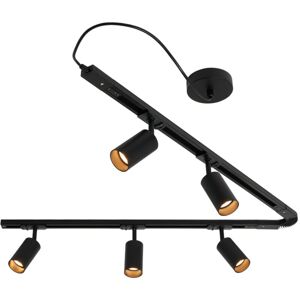 Treat yourself to an innovative lighting option with the Bexley 1.8m Flexible Track Kit with 5 Heads in Black. The main feature of this track light kit is the flexible centrepiece, which allows you to fit the light at any angle of your choosing. The sleek black finish offers a monochromatic and contemporary look to your home. Product Type: Track Light Kit Bulbs Required: 5 (Not Included) Bulb Type: GU10, Bulb Wattage: 7 Watt Max Bulb Voltage: 240 Volt Height: 1.5 cm approx, Length: 183 cm approx. Width: 3.5 cm approx. Material: Metal Colour: Black Technical Information Spot Length: 10.5 cm approx. Spot Height: 24 cm approx. Spot Width: 6 cm approx. Weight: 2.64 kg
