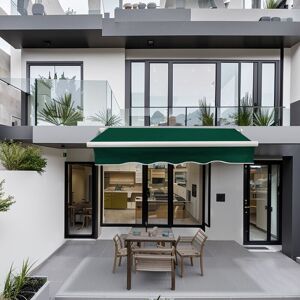 2.5 x 2m Cream Patio Manual Awning Features: -Recommend to fix on concrete wall. -With Steel Square Torsion Bar and Aluminium roller, more durable than other seller,no torsion bar awning. -With two heavy duty cables in the center joint of arms makes it easier to project and retract. -Side covers on the roller support makes your awning elegant looking. -The specially designed aluminium arms are adjustable to enable you to alter the slope of the awning from 5 degrees to a relatively steep tilt of approximately 35 degrees from the horizontal. -Retractable, can be opened as much or as little as you like up to the maximum projection. -Steel crank handle is on the left as you face the awning (same as shown in picture), and can not be moved to another side. Specifications: -Steel Square Torsion bar: 35x35x1.2mm -Aluminium front bar: 47.2x35.6x1.2mm -Aluminium support arm: 47x28x1.2mm, 37x20x1.2mm -Fabric material: PU coated water-resistant 300g/m2 polyester fabric. -A printing error in the