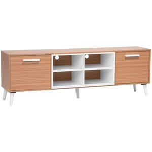Sliding Door TV Stand for a TV up to 55ʺ. Complete your interior with this TV stand that combines a traditional design with a modern twist. Made from durable MDF, it features two smooth sliding doors, two drawers and two shelves, perfect for keeping essentials organized. Supported by sturdy pine wood legs, this piece adds a timeless charm to interiors in various styles. Its easy-to-clean surface ensures daily maintenance is a breeze, making it both a practical and attractive addition to your space. Details: Product Type: TV Stand Style: Boho General Color: Brown Material Type: Engineered Wood Main Material: MDF Additional Material: Particle Board Legs material: Wood Top Material: Engineered Wood Shelves number: 2 Doors Opening: Sliding Drawers: Yes Finish: Laminated Number of Doors: 2 Number of Drawers: 2 Dimensions: Depth: 40 cm Width: 120 cm Height: 47 cm Weight: 23 kg Drawer Weight Capacity: 3 kg Shelf Weight Capacity: 5 kg Top Weight Capacity: 10 kg Offer Includes: 1 x TV Stand