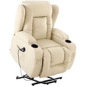More4homes - caesar electric rise recliner winged leather armchair massage heated chair (Cream)