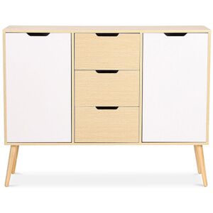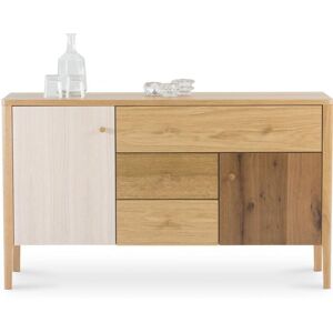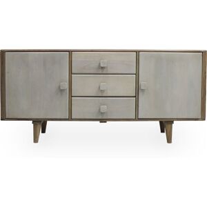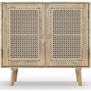 Meet Opa, this unique vintage style media unit. It is a three-door piece with a frame made of oak standing on metal legs. The natural feel is enhanced by cane webbing on each door. This piece has plenty of storage space for tech bits, while preserving a natural look. A perfect media unit for a living room. Dimensions : 38 cm x 156 cm x 50 cm (L x W x H)
