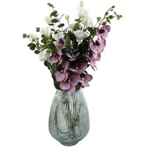 50cm Artificial Orchid with Glass Planter in Pink. Botanik, renowned for our expertise in orchids, presents a collection of highly realistic blooms available in various hues. This stunning orchid features lifelike PVC flowers elegantly displayed in a captivating planter. Admire its dimensions of 50cm x 40cm x 40cm, meticulously arranged to perfection. The flexible wired stems allow for customization to suit your space effortlessly. Delight in the included gorgeous pot, measuring 19cm (d) x 10cm (h), crafted from luxurious glass material. Elevate your decor with this sophisticated piece, ready to grace your home straight out of the box. Leaf Artificial Orchid with Glass Planter Pink Botanik in Green