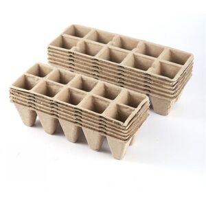 A set of 5 nursery pots with a total of 100 compartments. It can be cut into independent seedling pots to meet different planting needs. The total size is 25.5 × 10 × 5.5 cm, and the size of each individual nursery pot is 4.2 × 4.2 × 5.5 cm. This nursery pot is made of degradable natural plant fibers. It has good water absorption and retention and is more environmentally friendly than plastic. When decomposed, they can be used as fertilizer for flowers, plants and trees. The seedling pots are easy to manage and transplant, improving the survival rate of seeds. It is suitable for use in gardens, courtyards, nurseries, greenhouses and others places.