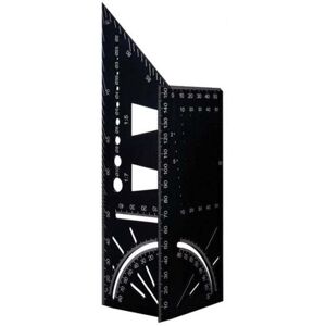 Material and functions: The carpenter's square is made of high-quality aluminum alloy, is high-hardness, high-toughness, wear-resistant, oxidation-resistant, and durable. For three-dimensional marking - measuring and transferring angle measurements - stop at 45° and 90° - marking gauge for parallel lines - determining the drill bit size with the drilling template. Over 10 multifunctional functions: The drilling template is a square, protractor, dovetail template, circular hole, parallel line, vertical line, drilling positioning, T-shaped tip, 45°/90° angle ruler. Example: custom colors for labels. Measuring and transferring angle measurements. 45-degree and 90-degree angle stop/marking gauge for parallel lines. Drilling dimensions with the drilling jig. Wide range of applications: The joinery ruler is suitable for processing three-dimensional workpieces, e.g., beams, square timber, square and tubular pipes, hollow and solid, aluminum alloys, wood, stainless steel, marble, etc. It
