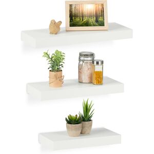 These shelves in a set of 3 can spruce up empty walls in the living room or bedroom. Small plants, pictures or decorative figures find a great place on the wall with the hanging shelves and are decoratively set in scene. The simple design in white also fits perfectly in the hallway or kitchen, where the wall shelves are suitable for spices and storage containers. Thanks to the enclosed mounting material, the floating shelves are attached to the wall in no time. Wall shelf set of 3 in detail - Size S H x W x D: approx. 3.5 x 29 x 15 cm / approx. 0.5 kg - Size M H x W x D: approx. 3.5 x 35.5 x 15 cm / approx. 0.6 kg - Size L H x W x D: approx. 3.5 x 42 x 15 cm / approx. 0.7 kg - Load capacity: max. 8 kg each - Material: MDF, iron - Colour: White White decorative shelves for the wall - Decorative home accessories for your home - Effectively present decorative items, plants, etc. - Versatile shelves for kitchen, bedroom and living room - Simple design in white blends in well anywhere