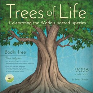 Fascinating trees featured in this all-new calendar by botanical illustrator Matt Strieby include Buddha’s bodhi tree, Australia’s water-giving boab, and the eastern white pine known as the Great Tree of Peace by North America’s Iroquois.Accompanying text reveals hidden secrets about the tree’s companion plants, birds, insects, mammals, fungi, and other species. Features include: 12" x 12" (12" x 24" open) Cover design eliminates need for plastic packaging Printed on FSC® certified paper with soy-based ink Spans January–December 2026 Generous grid space for notes, appointments, and reminders Official major world holidays and observances Moon phases, based on Universal Time Botanical tree illustrations with amazing facts For tree lovers looking for more than pretty photos Wall art for your home, school, or office that provides a sense of time for planning and dreaming WE PLANT TREES to offset our carbon footprint and resource usage — more than ONE MILLION and growing!NO SINGLE-USE PLASTIC — We have eliminated single-use shrink wrap to reduce plastic pollution.RESPONSIBLY SOURCED — Our paper is responsibly sourced from a combination of recycled materials and wood harvested from socially and environmentally sustainable forests and is FSC® certified.