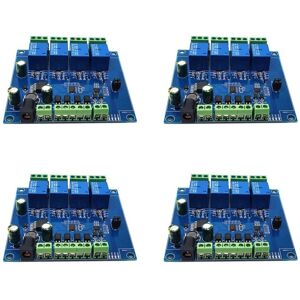 1. Onboard stable MCU and MAX485 level conversion chip 2. Communication protocol: Support standard Modbus RTU protocol 3. Communication interface: Support RS485/TTL UART interface 4. Communication baud rate: 4800/9600/19200, default 9600, support power off 5. Optocoupler input signal range: DC3.3-30V (this input cannot be used for relay control) Output signal: relay switching signal, support manual, flash, flash mode, the flash/flash delay base is 0.1s, the longest flash/flash time can be set to 0xFFFF*0.1S=6553.5S Device address: range from 1 to 255, default 255, support shutdown save Baud rate, input signal, relay status, device address can be set by software/command Onboard 4 relays 5V, 10A/250V AC 10A/30V DC, can be activated 100,000 times continuously, with overcurrent protection diode overflows and short response time Onboard relay switching indicator light Supply voltage: DC7-24V, supports 5.08mm DC jack/power terminal, with input anti-reverse connection protection Type: Relay