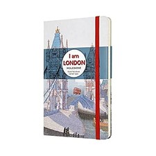 Moleskine's I Am London Limited Edition not. The hard cover is whitewith I Am London graphics. The large not is 21 x 13 cm. Featuring 240ruled pages on acid-free paper, as well as a ribbon bookmark, elastic closureand rounded corners.