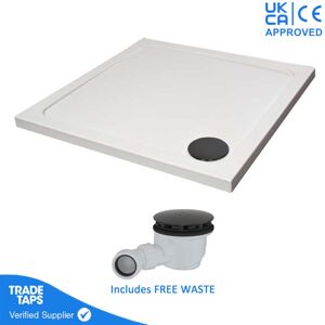 Gravahaus - 1000 x 1000mm White Square 45mm Low Profile Shower Tray with Matt Black Waste
