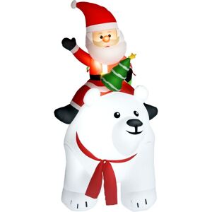 Christmas made extra fun? Yes please. Do it, this season and beyond, with this Outsunny inflatable santa claus riding on a polar bear. The polyester shell makes this a tough piece, which is also IP44 rated for mild water resistance—it's suitable for use in mild rain outdoors. Inside there is five white LED lights - this inflatable Santa gently illuminates to create a soft and welcoming atmosphere, inside and outside. Specifications: - Primary Colour: White - Type: Inflatable Santa Claus Riding on Polar Bear - Material: Polyester Cloth - Overall Dimension: 180W x 100D x 200Hcm - Overall Height: 6.6ft - Cord Length: 3(m) - LED Light Count: 5 - LED Light Power: 0.48W - Fan: DC 12V, 1A - Input Voltage: AC 220-240V, 50/60Hz - Output Voltage: DC 12V, 1.25A - Certification: IP44 - Item Label: 844-944V70WT NOTE: Blower needs to be plugged in to keep outdoor Christmas decoration full. Do not leave plugged in for more than eight hours. Do not use in heavy rain, snow or wind Features: ● A fun