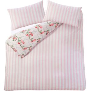 Made for dreamers, the beautiful Rose flutter bedlinen is a modern take on a traditional classic. Hand painted Roses dance amongst delicate foliage alongside a hand-painted ditsy wiggle which is contrasted with a bold, candy stripe. Printed onto soft 100% cotton percale in a dreamy palette of pale plaster pink, coral shades, and a vibrant green leaf. Cath Kidston Size: King