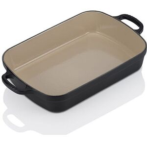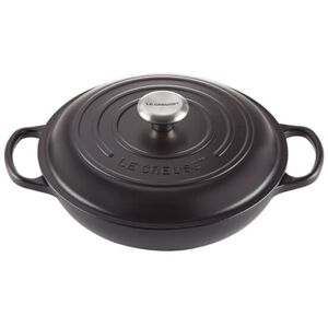 With a 4.1 litre capacity, this Le Creuset Signature Satin Black Cast Iron 27cm Oval Casserole is the ideal size when cooking for 4-6 people. Just as versatile as Le Creuset’s round casseroles, this oval version cuts down on the space taken up in the oven. It can also be used on all types of hob, including induction, or under a grill. The cast iron construction is excellent at retaining heat, resulting in even cooking and browning. It will also keep cooked food warmer for longer when serving at the table. The tight fitting lid also helps the cooking process by locking in moisture and enhancing flavour. The light enamel interior makes cleaning easier whilst the large handles are easy to grip when lifting the casserole, even when wearing oven gloves. The heat resistant knob (oven safe up to 260°C) also provides a better grip when wearing oven gloves or mitts. Handcrafted at the Le Creuset foundry in northern France since 1925, Le Creuset casseroles are made from premium quality cast iron ensuring each product is beautifully finished and long lasting. A true kitchen essential, the cast iron oval casserole is not only perfect for making casseroles, stews and one pot roasts, but is versatile enough for baking cakes and bread. Le Creuset cast iron cookware also works efficiently at low to medium cooking temperatures and retains heat effectively, ensuring food stays warm for longer. Le Creuset cast iron casseroles are suitable for all hob types (including ceramic, halogen, induction, gas and oil or wood). They are also dishwasher safe although we would recommend hand washing. The Le Creuset 27cm oval cast iron casserole is ideal for 4-6 people and has a capacity of 4.1L. Dimensions: L35.2cm x W22.6cm x H15.4cm. Weight: 4.43kg. The Le Creuset Signature Satin Black Cast Iron 27cm Oval Casserole is supplied with a lifetime manufacturer's guarantee.
