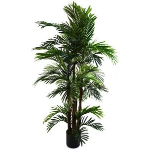 This faux Areca palm tree boasts silk leaves and natural details at the base, creating an incredibly lifelike appearance. Standing at an impressive 150cm x 110cm x 110cm, this grand tree exudes elegance. Its wired branches allow for customization, shaping the leaves to perfectly suit your space. Delivered in a weighted black plastic pot (18cm (d) x 14cm (h) approx.), this tree truly shines when placed in a decorative planter, topped with gravel or soil for a sophisticated finish. The Seasonal Aisle