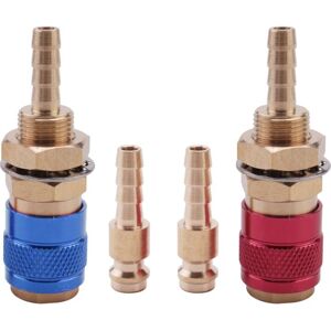 1. Fast connection of water/gas between welding torch and welding plug. 2. These quick connectors are easy to install, recommended for fitting inner diameter 6mm hose. 3. Made of high quality brass, has strong wear resistance performance, so in use. 4. This water cooled adapter can be used for MIG TIG welder torch, with better performance. 5. Precision manufacturing, this adapter is manufactured to strictly follow factory quality control. Condition: 100% new Item Type: Water Cooled Adapter Model Number:Quick Connector color:Red+blue+copper Material:brass Package Contents: 1 x Blue 6mm Quick Female Connector 1 x Red 6mm Quick Female Connector 2 x 6mm Male Connector Only the above package content, other products are not included. Note: Light reflection and different displays may cause the color of the item in the picture a little different from the real thing. The measurement allowed error is +/- 1-3cm.