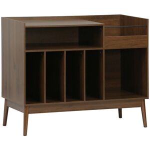 Our Nepal collection has been designed to bring warmth and elegance to your home. Whether it's a buffet, console, TV stand, bedside table, or chest of drawers, indulge in the entire Nepal collection to transform your interior into an organised and stylish space. Let yourself be charmed by this beautiful vinyl record storage cabinet. Its warm wood decor and compass legs give it a Nordic style that we love to see in our interiors. But that's not all; the DUNE cabinet has a retro flair. To showcase it, there's nothing better than displaying your favorite vinyl records and turntable. The decor couldn't be more vintage! This piece is not only beautiful but also extremely functional. With its 4 storage compartments and a niche, it offers ample space for all your favorite items, as well as your vinyl records and turntable. A piece of furniture that will meet all your expectations and more! Overall dimensions: L 100 x D 48 x H 81,5cm Top left board: L 64,4 x D 46,5cm Top right compartment: L
