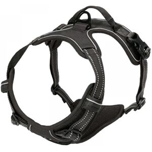 Suitable for all dogs: This no-pull harness has four adjustment points and an elastic band on the belly for added flexibility. Size S is suitable for pets with a neck circumference of 42 to 66 cm and a chest circumference of 38 to 89 cm. Suitable for everyone: Made of soft and breathable material, allowing your dog to move freely in comfort. The handles are padded. SAFETY FIRST: The dog harness has multiple stitching and reflective strips all around to ensure your safety during night walks or runs. We also chose chew-resistant materials. Closure system: Thanks to the new shape of the closure buckle, it does not open under tension. The buckle can only be opened by applying pressure on both sides.
