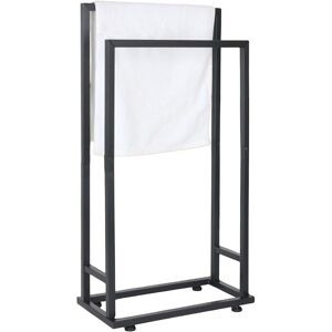 The bathroom rack allows you to hang your shower and bath towels in a space-saving manner. The two offset bars ensure good air circulation so that your towels can dry easily. You can also use the bath towel rack as a storage solution for clothing. The free-standing shower towel rack can be flexibly placed in the bathroom or guest WC. The stand towel rack impresses with its modern design in matte metal, which blends harmoniously with many interior styles. Towel rack in detail - Dimensions H x W x D: approx. 77 x 41 x 21 cm - Height of lower bar: approx. 69 cm - Load capacity per bar: approx. 5 kg - Material: iron - Various colours Standing towel rack - 2 offset bars enable effective drying - For hanging hand towels, bath towels, or clothing - Modern design in matte metal fits well in any setting - Freestanding bath towel rack can be positioned flexibly - Ideal shower towel rack for bathrooms and guest WCs - Adjustable feet to compensate for uneven floors Included in Delivery - 1x towel