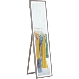 Getting ready, no matter the time of day, comes easy with this HOMCOM full length mirror. Thanks to the outer LED light you can see yourself easily when getting ready; choose between the warm white, natural or cool white colour with adjustable brightness. It can be used three wayseither attach to the wall, lean against the wall or leave it standing with the back leg. The wood-effect frame gives this big mirror a classic look and inside the thick mirror is shatter-proof to provide a clear view. HOMCOM Dimming Full Length Mirror w/ Lights Standing Leaning Wall Mount Grey