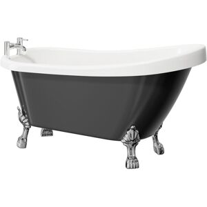 Model Number: WDB77405 Transform your bathroom into a sanctuary of relaxation with the Kensington Black 1550mm x 720mm Single Ended Freestanding Slipper Bath, a stunning addition to any traditional or contemporary space. The elegant design features a sleek black acrylic finish that not only adds a touch of sophistication but also provides a durable and lightweight option for your bathing needs. The eye-catching polished chrome tiger feet elevate the bath's aesthetic, giving it a vintage flair that is both charming and stylish. This freestanding slipper bath is designed for ultimate comfort, with its sloped backrest providing ergonomic support for a soothing soak. The generous dimensions offer ample space to stretch out, ensuring you can unwind after a long day. With a depth of 410mm and a capacity of 163 litres, it provides the perfect environment for indulgent baths, making it an ideal choice for homeowners looking to enhance their bathing experience. Not only does the Kensington