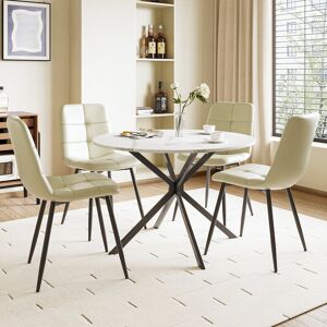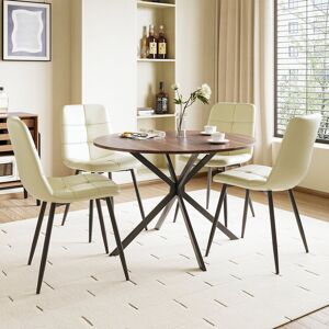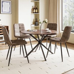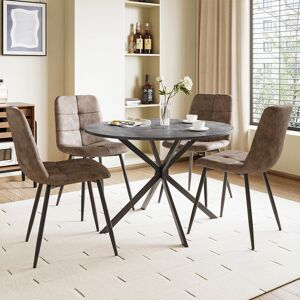 Unlock the perfect blend of style and practicality with our concrete-effect MDF dining table (18mm thick for premium durability) and chic metal chairs. This set masters the art of British living: fold one side of the table seamlessly against the wall for a space-saving semi-circle desk or cosy breakfast spot, then unfurl it in seconds into a full 100cm round table – ready to host Sunday roasts for six. The ergonomic faux leather chairs (wipe-clean check pattern!) offer plush support on sleek metal legs, marrying comfort with minimalist design. No space wasted, no compromise on style: entertain effortlessly, live smartly. Assembly? Simple. Life upgrade? Guaranteed. Your compact home deserves big possibilities. Norden Home Chair Colour: Grey, Table Top Colour: Grey