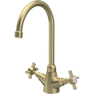 Features and Benefits: A high-end finishing touch to any kitchen Sleek traditional cross head handle design Swivel spout to make life easier High quality brass internals with luxury brushed nickel finish During installation extra care must be taken to avoid damaging the fittings Guarantee: 3 Year (12 months on serviceable moving parts from the date of purchase), please see manufacturer guarantee policy for more information Important Information: Waste sold separately (Available in our Store) Fixture Kitchen Sink Tap Type Kitchen Sink Mixer Mounting Deck Minimum Pressure 0.5 Bar Tap Handle(s) 2 Tap Hole(s) 1 Swivel Spout Yes Tap Head Shape Crosshead Tap Operation 1/4 Turn Ceramic Disc Tap Valve Type Manual Tap Height 320mm Tap Spout Reach 165mm Base to Spout 220mm Inlet Connection Size 1/2 BSP Tap Body Shape Round Material Brass Colour Brushed Nickel Brand Nuie Style Modern Market Domestic Weight 0.53 Kg EAN Barcode 5056678401163 Manufacturer Part Number(s) KB603 Flow Rate @ 0.5 Bar
