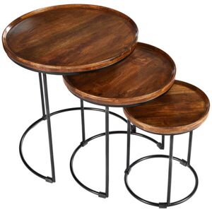 This solid wood nesting table set, crafted from mango wood, brings a touch of natural beauty to your home. The unique wood grain and knots of each table make this set a conversation starter. Perfect for adding a touch of elegance to your living space, the tables can be used separately or nested together. Borough Wharf