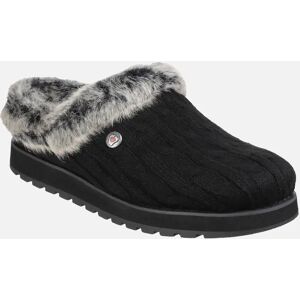 Stay cosy and comfortable in classic style with the SKECHERS Bobs Keepsakes - Ice Storm shoe. Soft sweater knit fabric upper in a slip on casual comfort clog slipper with faux fur lining and Plush Foam footbed. Soft knitted sweater upper Cosy slipper will keep your feet warm on cold evenings Faux fur trim for a soft and comforting touch Low back provides as easy on/off Rubber outsole suits indoor and outdoor use MVE & NVBL colours come up slightly bigger, may need a size down Skechers Women's Keepsakes Ice Angel Mule Slipper in Black Size: 5